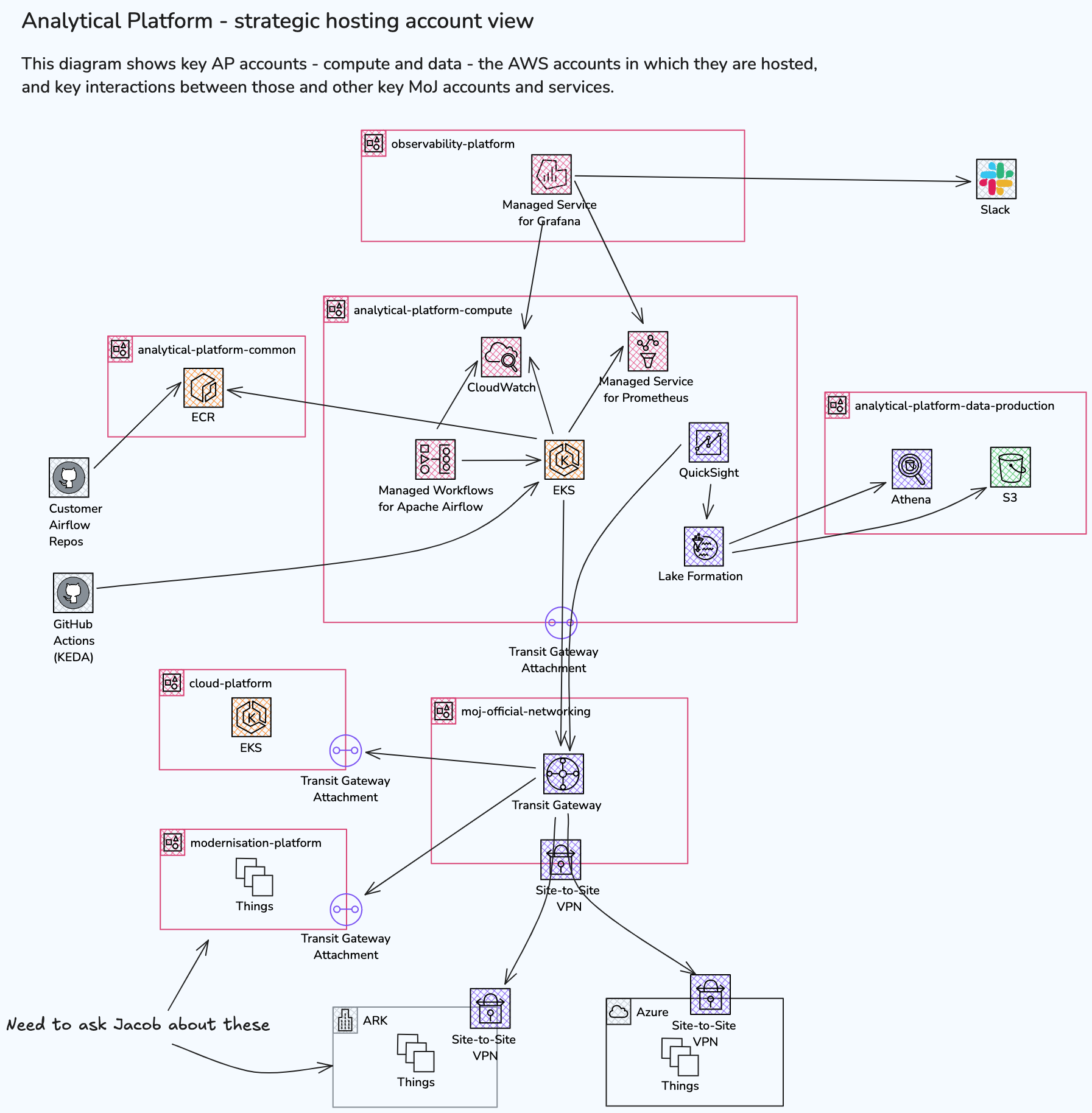 - Analytical Platform data and compute accounts. Shows data and compute accounts (ingestion omitted from this view).